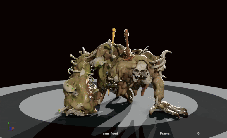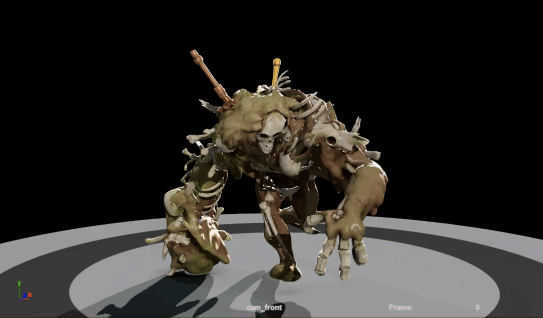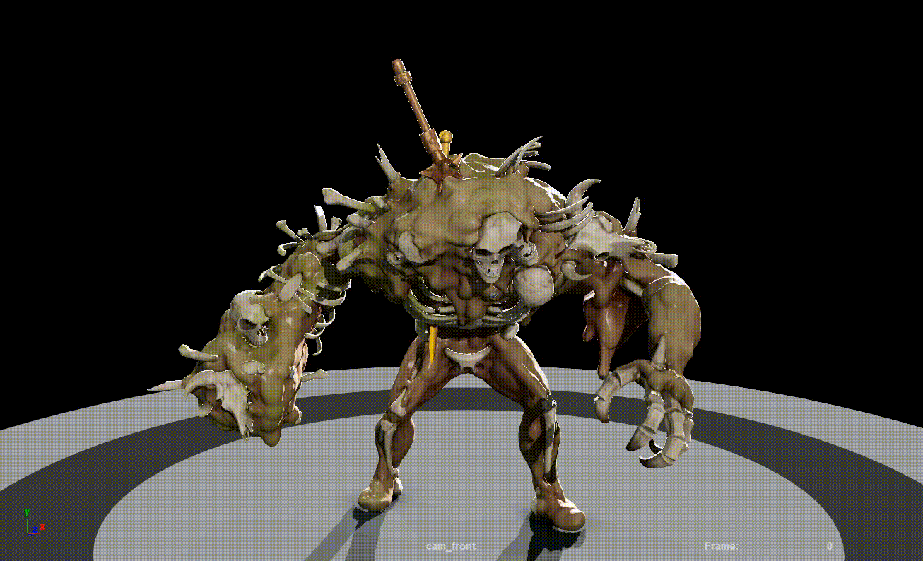 We finally finished all the combat animations for this big spooky dude! We added some status animations like standing after being knocked prone, finished his attack animations, and added his death animations.